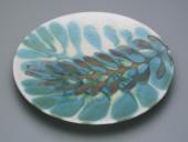 青瓷草花図皿