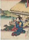 Interior view of a restaurant in the pleasure quarters along the banks of the Tamagawa