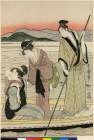 Actors Onoe Kikugoro, ?, and Segawa Kikunojo as Murasame, Yukihira, and Matsukaze
