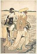 The Courtesan Ogino of Ogiya Tea House with Two Attendants