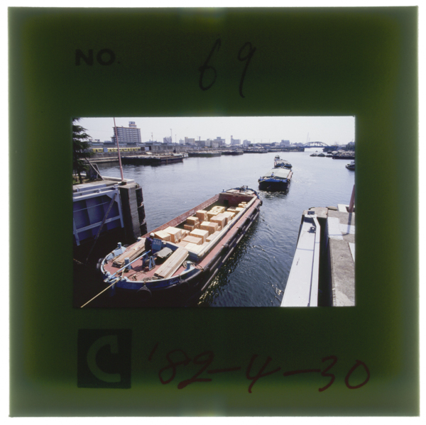 中川運河の中川口閘門 長さ110m 幅11mの閘門と開き戸式水門を備える 戦前の最盛期には1日平均200隻の船が出入した