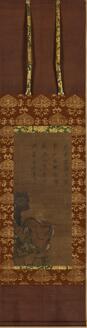紙本墨画朝陽対月図無住子筆