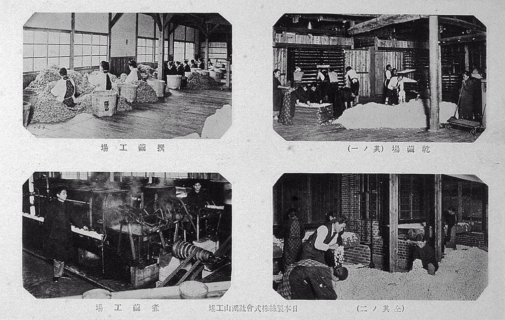 日本製絲株式會社湖山工場 乾繭場(其ノ一)・(仝其ノ二)・撰繭工場・煮繭工場