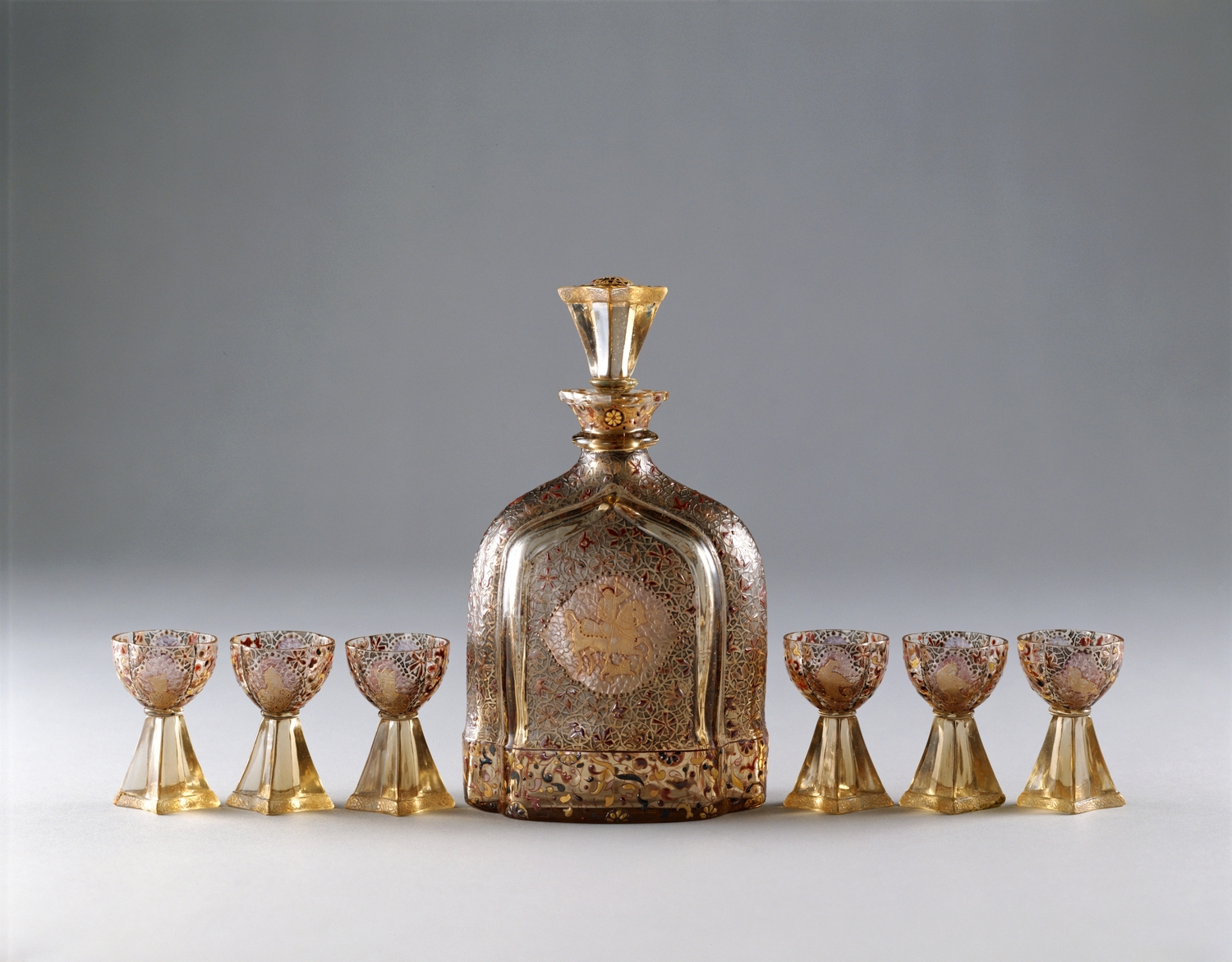 金彩栓付ガラス瓶・脚付ガラス杯揃い