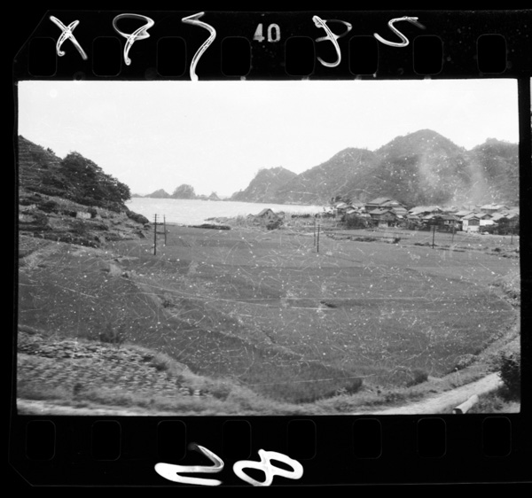 香住~竹野間の海岸.海岸沿いの狭い平地に水田がひらける