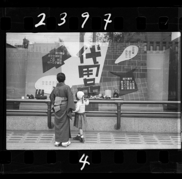 昭和一六年五月、門奈次郎撮影。東京日本橋高島屋の代用品キャンペーン展示。百貨店も販売禁止品目が増加したため、代用品を多く並べ...