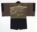 Men's kimono jacket with modernist motif, Samurai on horseback and tanks on the battlefield