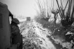 Two trucks on a snow covered road, Italy