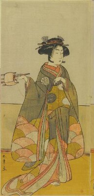 The Actor Segawa Kikunojo III, Possibly as the Courtesan Kojoro of Hakata, in the Play Chiyo no Hajime Ondo no Seto (Beginnings of Eternity: The Ondo Straits in the Seto Inland Sea) (?), Performed at the Kiri Theater from the Twenty-seventh Day of the Seventh Month, 1785