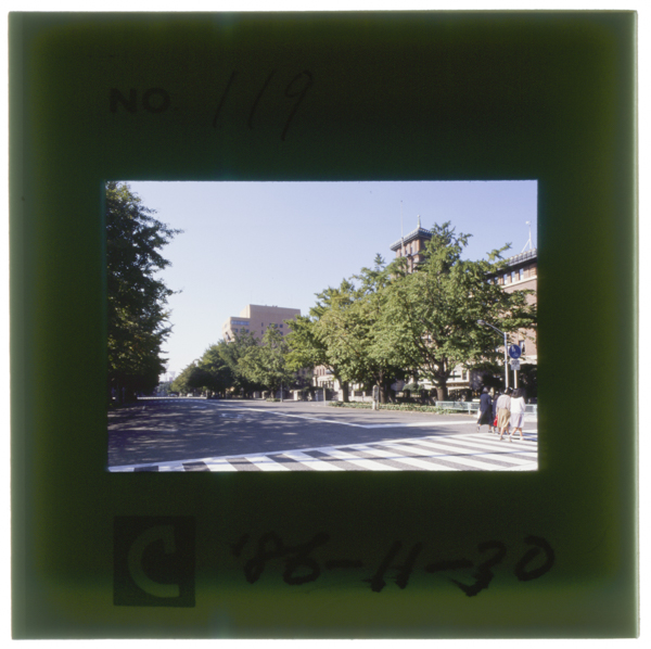 神奈川県庁前の日本大通り 旧居留地と日本人街の堺に当たる 下水道を含めブラントンに整備された