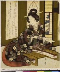 Woman Holding a Letter Box/ Letter Box (Fubako), from the series Seven Designs for the Katsushika Circle (Katsushika shichiban tsuzuki), with poems by Bunkeisha Shiomichi and Bunrinsha Matsunami
