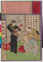 The Farmer Ōta Yaemon and his Son Fusajirō Sever and Exchange their Little Fingers before the Departure of the Son to War, No. 491 from the series The Postal Newspaper (Yūbin hōchi shimbun)