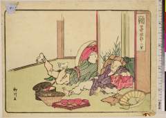 Crossing a Bridge in Summer, from the illustrated book "Picture Book: Flowers of the Four Seasons (Ehon shiki no hana)," vol. 1