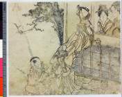 Surimono or a page from a kyoka album: Two women and a child