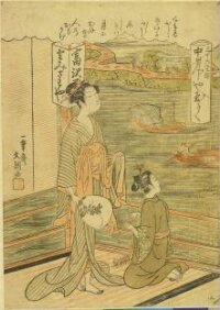 Courtesan and Her Attendant on a Balcony Overlooking River
