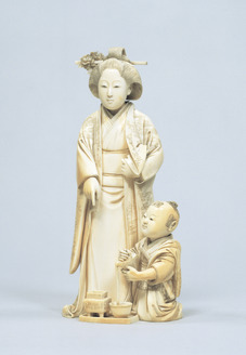 牙彫婦人小児像