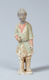 灰陶加彩鷹匠