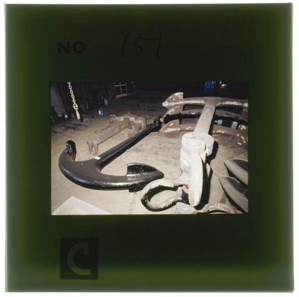 出来上がったストックアンカー(重量5,000kg)。このアドミラルティー型は,現在では主として作業船や桟橋などの係留に使われ...