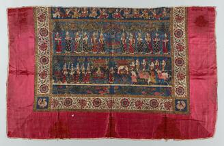 藍地クリシュナ文様金更紗