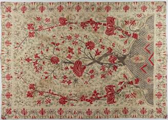 赤地火焔形花文様金更紗