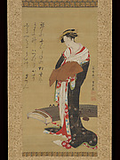 歌川豊春筆 蜀山人(大田 南畝)賛 琴に立美人図