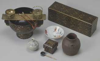 竹菱葵紋散蒔絵化粧道具