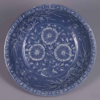 Large Dish with Peonies and Phoenixes Porcelain with underglaze blue