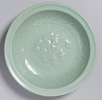 青磁貼花龍文盤 龍泉窯