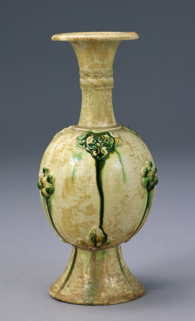 三彩貼花文長頸瓶