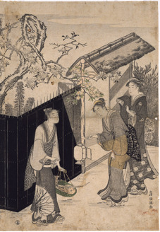 Three Ladies Hanging Kakemono, from a triptych