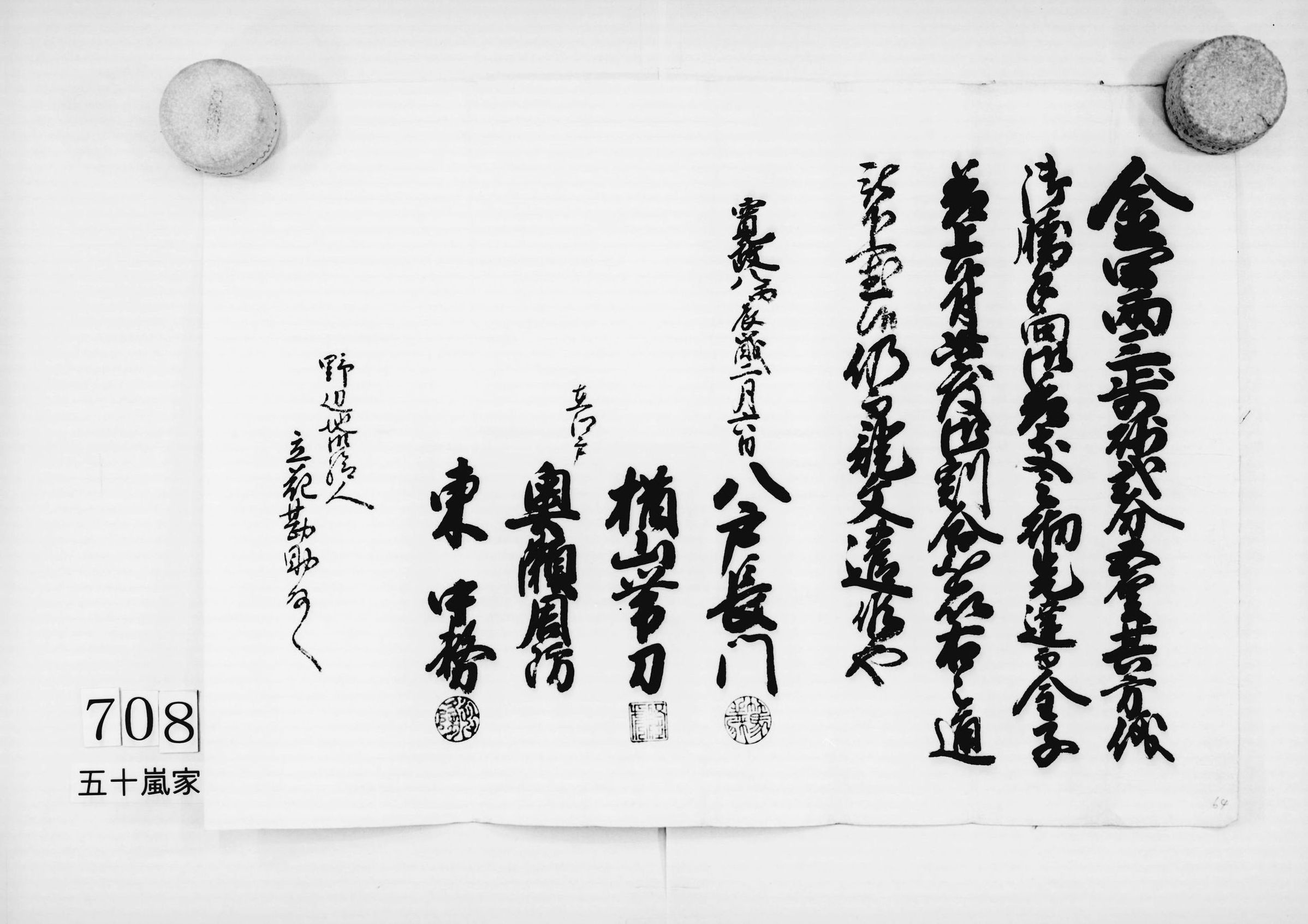 (金4両3歩砂1分5厘下賜証文)