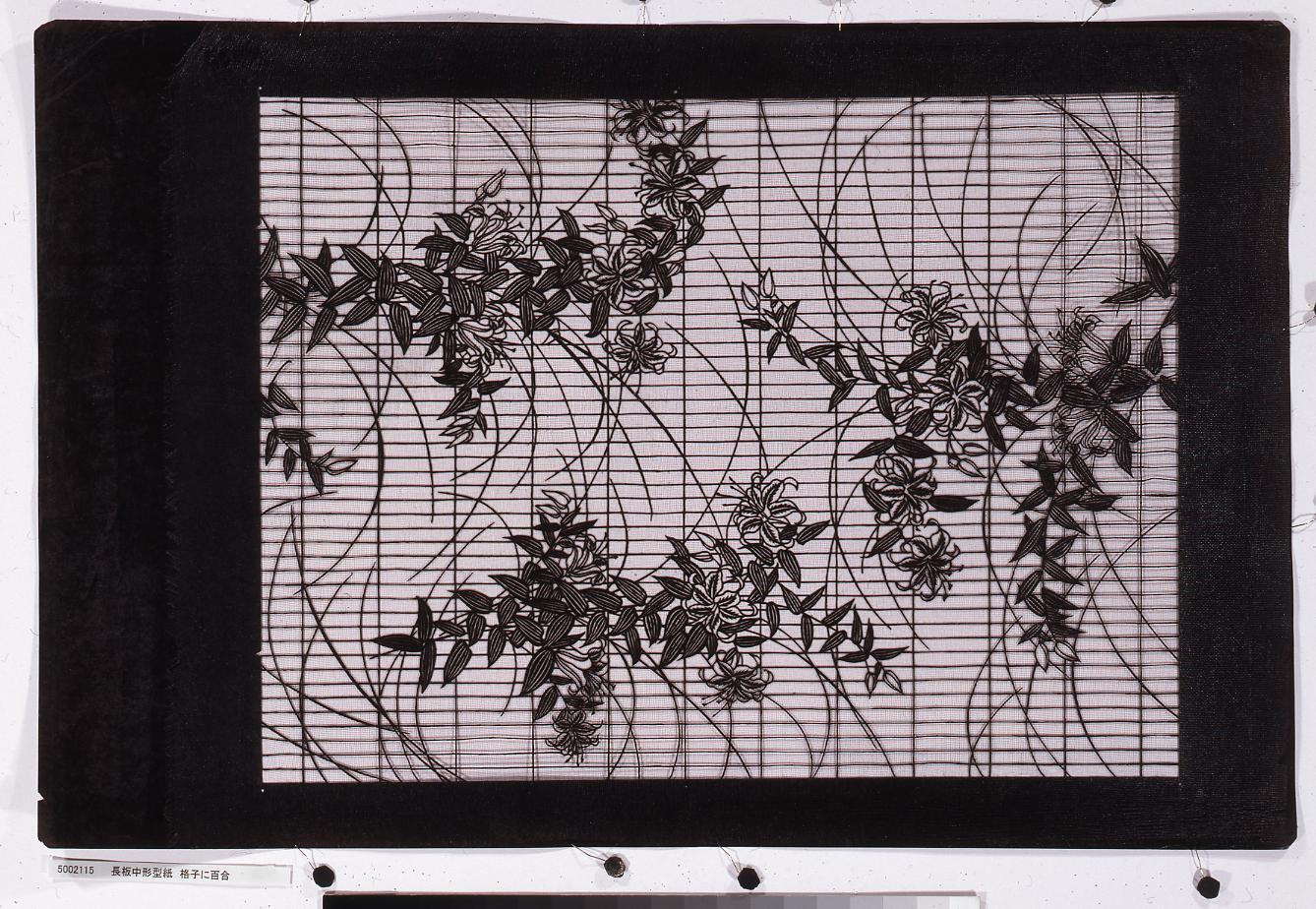 長板中形型紙 格子に百合