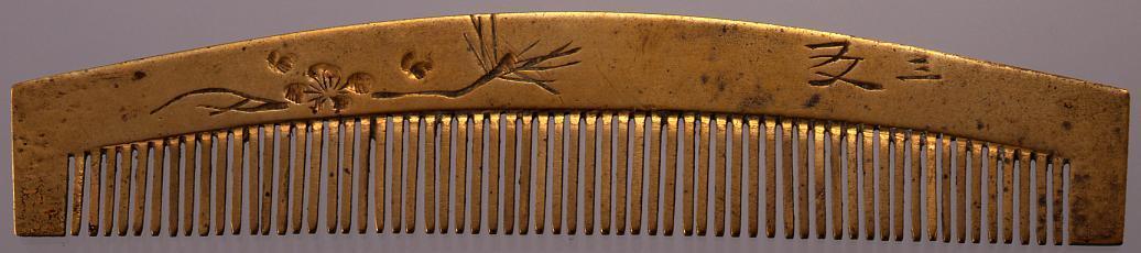 真鍮松竹梅片切彫櫛