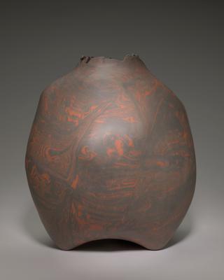 花瓶(薄赤薄緑地赤彩薄黒彩流文脚付瓶)