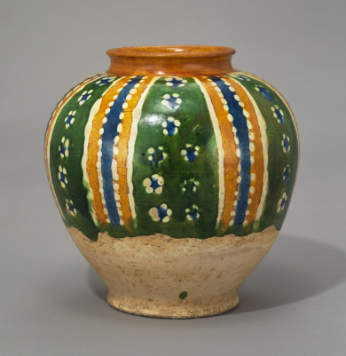 三彩筋文壺