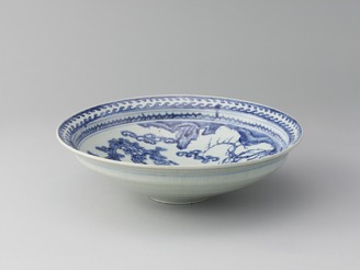 染付山水人物図大鉢