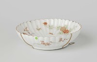 Suacer-dish with fluted sides and insects, peony and prunus sprays