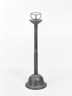 Candlestick with a conical bulb stem and candleholder and base with a water landscape