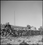 Infantry advancing over stone walls around fort at Cyrenaica, Libya - Photograph taken by M D Elias
