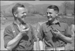 E T Richards and L K McGregor, NZ Infantry, resting behind the line after heavy fighting in Cassino, Italy, ...
