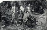 New Zealand soldiers Lepine, Gower and Finlayson with Japanese mountain gun during World War II, Treasury Is...