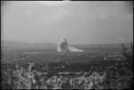 Bomb bursts and smoke from shells during bomber raid on Cassino, Italy, World War II - Photograph taken by G...