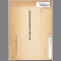 臨時肥料配給統制法及關係法規
