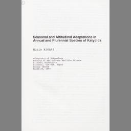 Seasonal and altitudinal adaptations in annual and plurennial species of Katydids