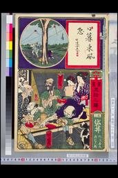 「膝栗毛五十三駅 由井宿」「さる市」「おさい」「喜太八」「鴫吉」「弥次郎」「犬市」