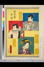 「松本家系譜」 「仁木弾正左衛門直則 六代目松本幸四郎 後錦升」「立場の太平次 市川高麗蔵」「げいしやおしゆん 初代松本よね三」