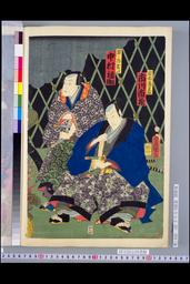 「岩木兵部 中村鶴蔵」「ぎおんのおりつ 尾上菊五郎」