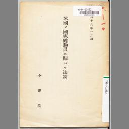 米國ノ國家總動員ニ關スル法制 : 昭和十六年一月調
