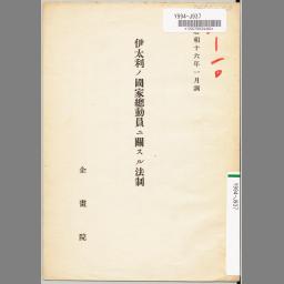 伊太利ノ國家總動員ニ關スル法制 : 昭和十六年一月調