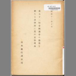第七十二囘帝國議會の協賛を經たる法律竝に其の立法理由